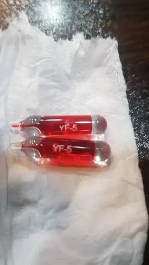 - Dyed Mercury: Standard liquid mercury mixed with red nail polish or red ink.